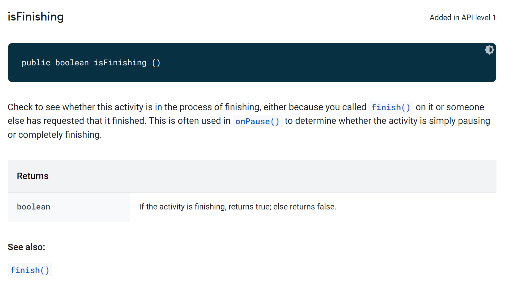 -. isFinishing()이라는 api를 쓰게되면 문제는 깔끔히 해결됩니다.